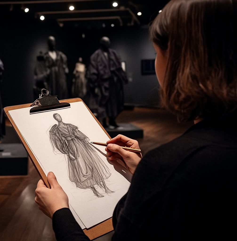 סדנת רישום ייחודית בתוך חלל התערוכה שבמוזיאון, בה נצא למסע בין בובות ראווה, בגדי אופנה מיוחדים, נייר ועיפרון.